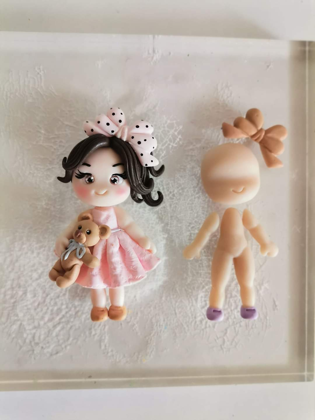 Matriță mini-păpușică potrivită pentru broșe, mărțișoare, decorarea fundelor sau o lingurițelor; în funcție de imaginația fiecăruia.